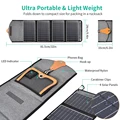 Exclusive Smart Charging: Charge compatible devices at up to 5V/2.4A (Max)when under direct sunlight. Convert up to 21.5-23.5% of solar power into free energy with highly efficient sunpower solar panel. Ultra Compact: It's 245x160x30mm when folded. Foldable design makes it ultra compact and ready for travel, just slip it into the bag and go out whenever you like. Incredibly Durable: Constructed with four solar panels with waterproof nylon, this usb solar charger offers weather-resistant outdoor durability. And two eye-holes on the side allow easy attachment to backpacks, trees or tents. Wide Compatibility: Works for most of devices that require 5V power. You can charge iPhone, Android smartphones, tablets and other USB-charged devices. Energy-saving and environmentally friendly, the charger will keep USB-powered devices charged up while travelling.